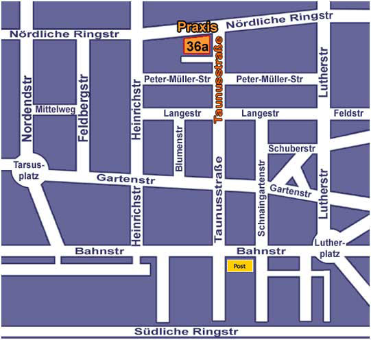 Eigene und öffentliche Parkplätze sind direkt an der Praxis reichlich vorhanden